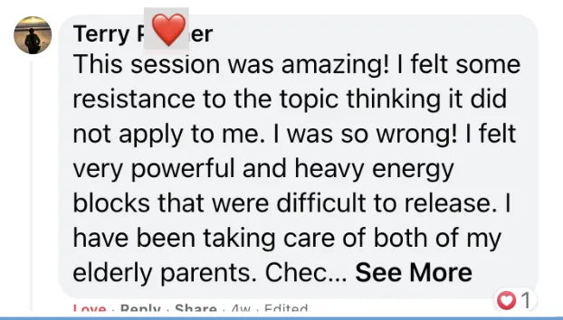 : Wow, another powerful session that knocked me out at times. Thank you 😁